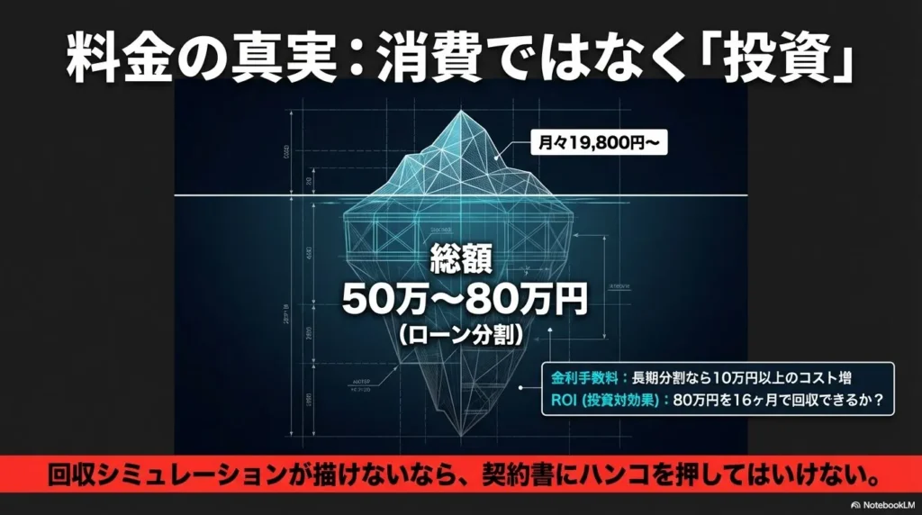 - ✅ 公式サイトの表記だけでは見えてこない料金総額と分割払いの落とし穴