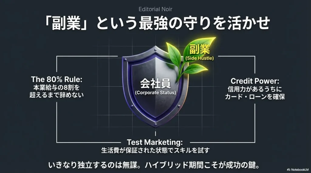 このハイブリッド期間をいかに濃密に過ごすかが、フリーランスとしての寿命を決定づけます。