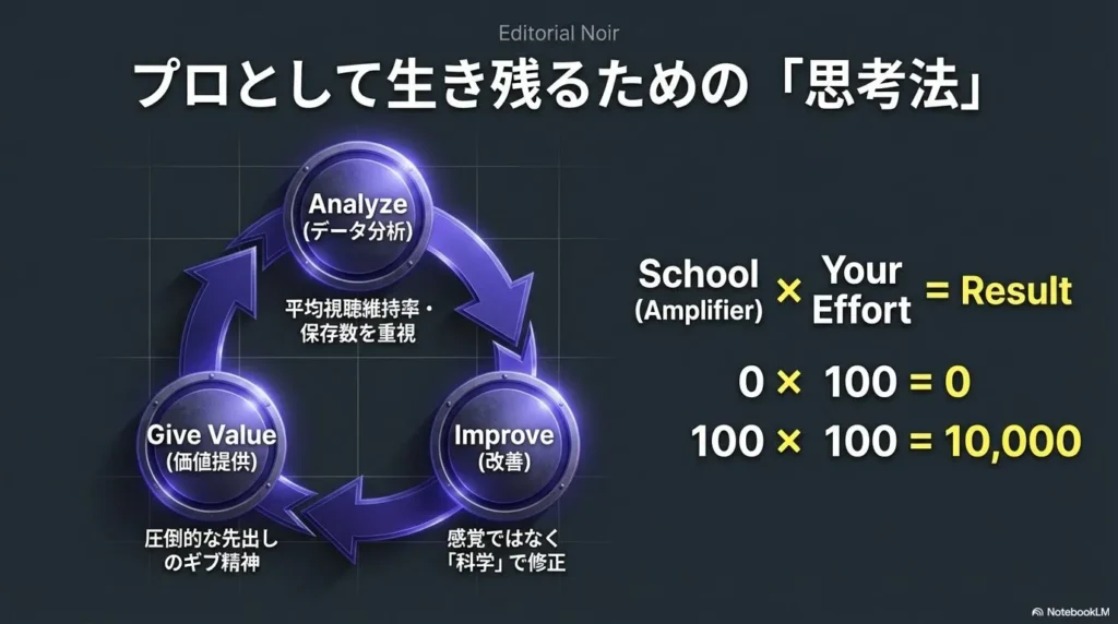 だからこそ、「なぜこの動画が伸びたのか」「なぜ伸びなかったのか」をインサイトデータから分析する能力が、フリーランスとしての寿命を決めます。
