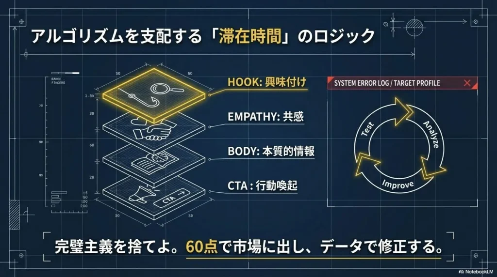 注意警告: 自分の「書きたいこと」を優先してはいけません。SNSは自己表現の場ではなく、読者の「問題解決」の場です。常に読者の目線に立ち、「この投稿を見ることで、彼らの悩みが1ミリでも解決するか?」という自問自答を繰り返してください。