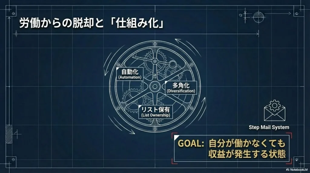 SNS副業で月10万円、20万円と稼げるようになったら、次に考えるべきは「独立」と「運用の自動化」です。会社員としての安定を捨てて、自分の力だけで生きていくためには、単発の収益ではなく、継続的に、かつ最小限の労力で収益が上がる体制を整えなければなりません。論理的なビジネスモデルを構築し、「自分が働かなくても回る仕組み」を作ること。ここからは、僕が実践してきた「労働からの脱却」をテーマにした高度な戦略を公開します。