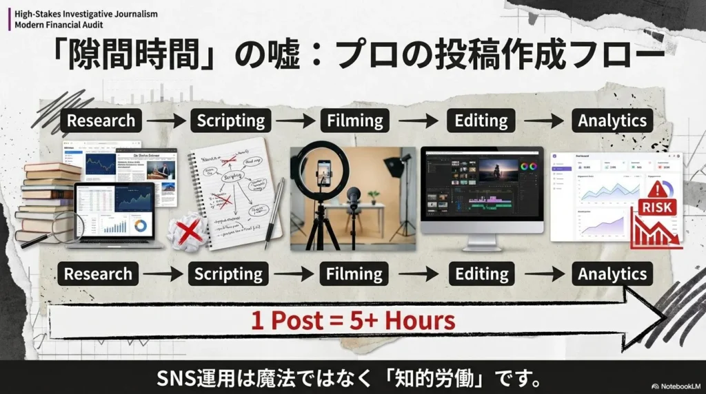「隙間時間」だけでこれら全てをこなそうとすれば、当然クオリティは低下し、誰にも見向きもされない「ゴミ投稿」を量産する結果に終わります。