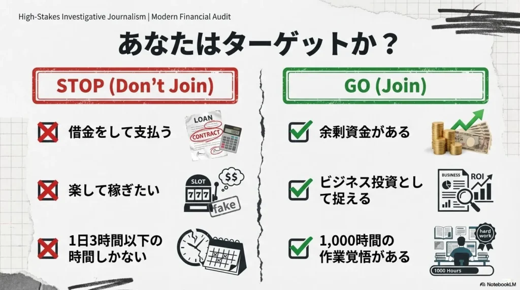 この記事は、あなたが大切なお金を投じるべき価値があるのか、それとも回避すべき案件なのかを判断するための「最終結論」となるはずです。