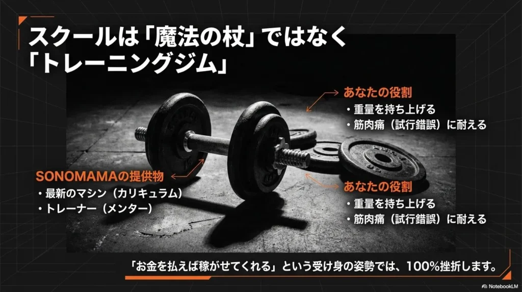SONOMAMAの受講料が数十万円という単位であることは、多くの会社員にとって、貯金の大きな部分を占めるか、あるいは数年間のローンを背負うことを意味します。